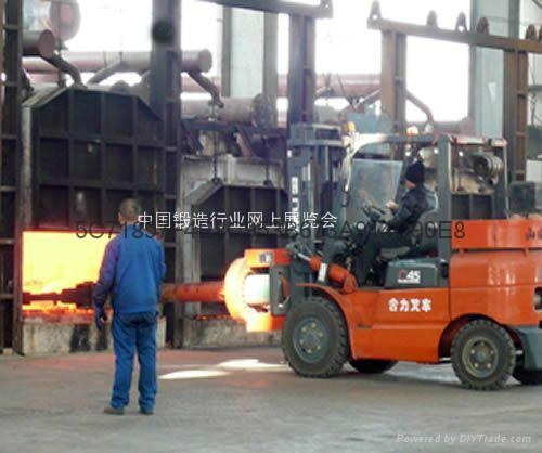 公司生產的無軌裝出料機是適應鍛造車間無法或不便鋪設軌道時的爐料裝出作業。1--5T可用叉車改裝,5T以上為自行式裝出料機。該機有八大動作,直行,轉彎。昇降,傾斜,夾料,旋轉,伸縮,擺動。可在公司及車間內夾持物料自如運動。